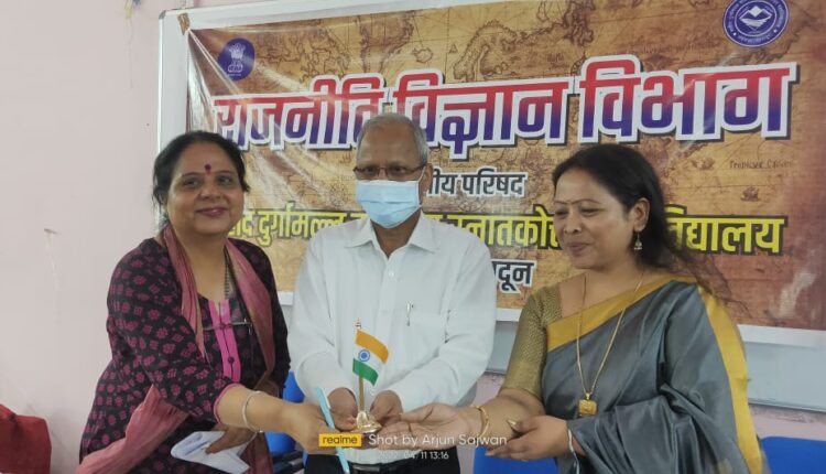 शहीद दुर्गा मल्ल राजकीय स्नातकोत्तर महाविधालय डोईवाला के राजनीति विज्ञान विभागीय परिषद् , 2021 22 के द्वारा विभिन्न प्रतियोगिताओं का आयोजन किया गया। विभागीय परिषद् के पुरस्कार वितरण कार्यक्रम में प्राचार्य डॉक्टर डी सी नैनवाल ने कहा कि राजनीति विज्ञान एक महत्वपूर्ण विषय है जिसमे विभिन्न प्रतियोगिताओं द्वारा छात्र छात्राओं को प्रतियोगी परीक्षाओं की तैयारी में सहायता मिलती है। साथ ही राजनीतिक सहभागिता एवं अच्छे नागरिक बनने के गुण विकसित होते हैं। विभिन्न प्रतियोगिताओं के परिणाम इस प्रकार रहे।