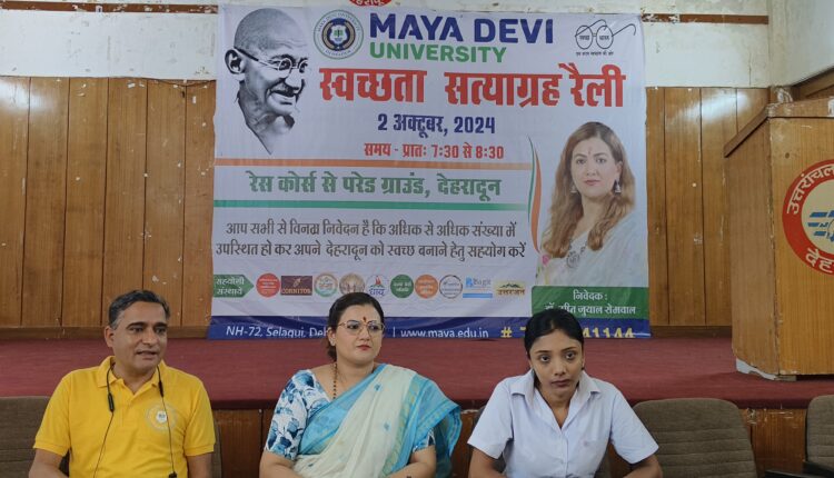 देहरादून : माया देवी यूनिवर्सिटी द्वारा देहरादून आज 2 अक्टूबर से 25 दिन का स्वच्छता सत्याग्रह रैली