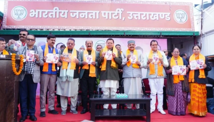 भारतीय जनता पार्टी (भा.ज.पा.) ने उत्तराखंड में आगामी नगर निकाय चुनाव के लिए अपने संकल्प पत्र को आज सार्वजनिक किया। देहरादून में पार्टी मुख्यालय पर आयोजित एक कार्यक्रम में मुख्यमंत्री पुष्कर सिंह धामी ने इस संकल्प पत्र को जारी किया।