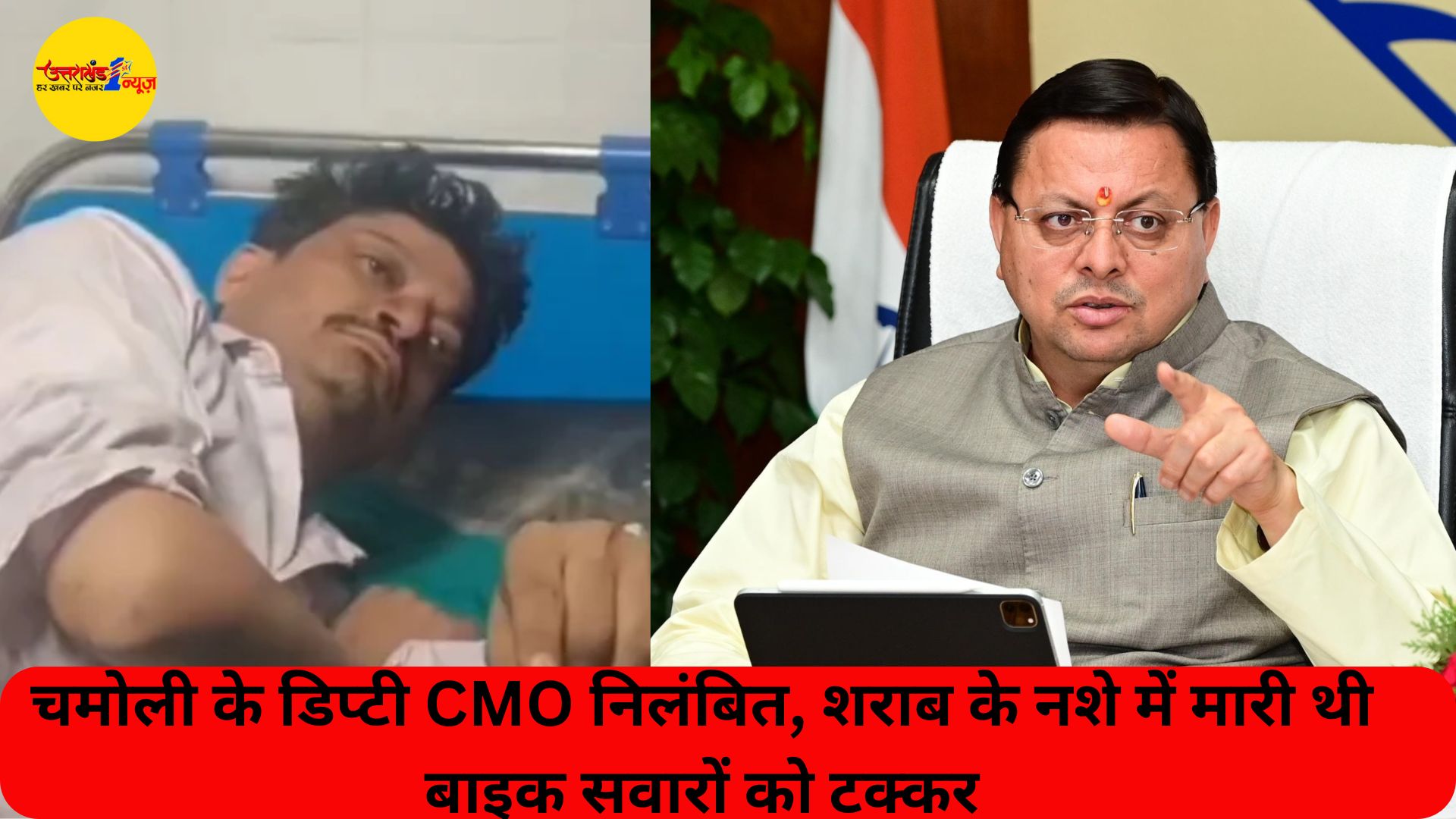 चमोली: उत्तराखंड में स्वास्थ्य विभाग के एक वरिष्ठ अधिकारी की लापरवाही और अनुशासनहीनता का मामला सामने आया है। चमोली के प्रभारी अपर मुख्य चिकित्साधिकारी (डिप्टी CMO) डॉ. मोहम्मद शाह हसन को मुख्यमंत्री पुष्कर सिंह धामी के निर्देश पर तत्काल प्रभाव से निलंबित कर दिया गया है। यह कदम उस वक्त उठाया गया जब सामने आया कि डॉ. हसन ने शराब के नशे में दो बाइक सवार युवकों को टक्कर मार दी, जिससे वे गंभीर रूप से घायल हो गए।