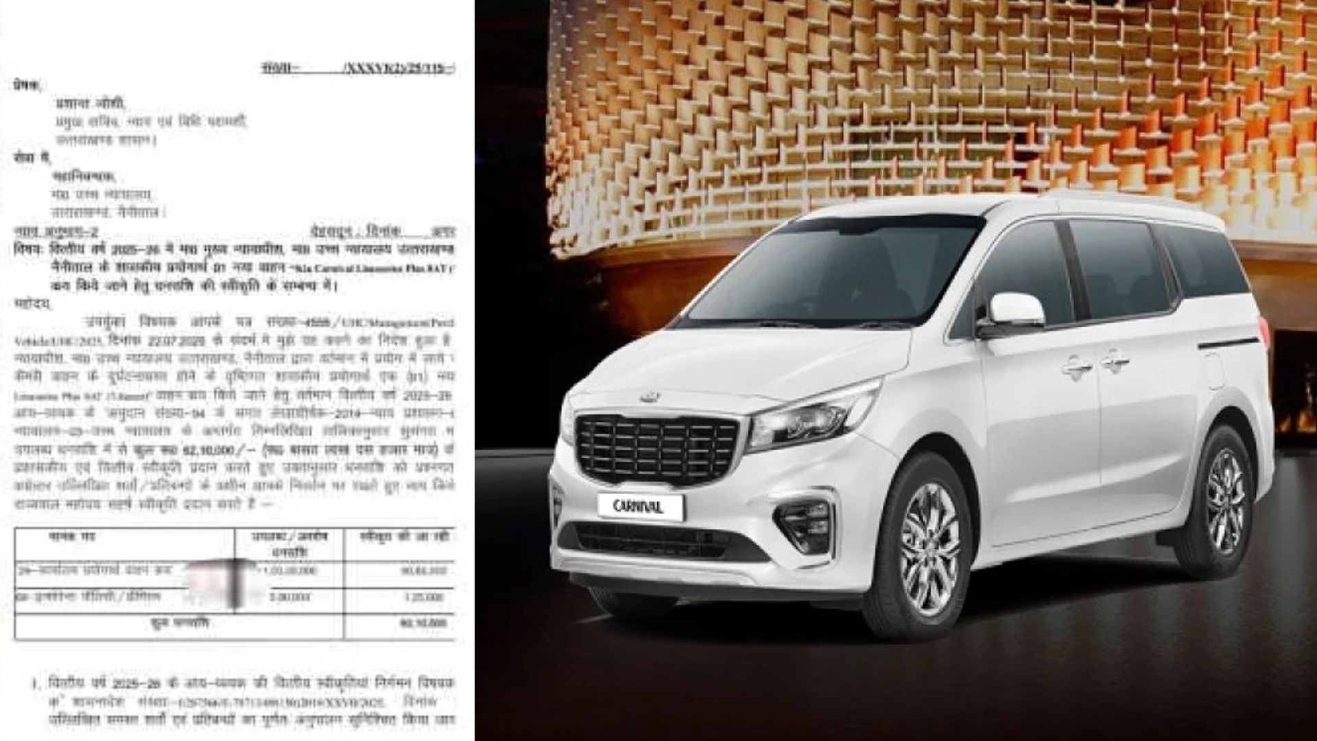 उत्तराखंड के मुख्य न्यायाधीश के लिए राज्य सरकार के वित्त विभाग ने नई KIA Carnival Limousine कार खरीदने की मंजूरी दे दी है। प्रमुख सचिव, न्याय एवं विधि परामर्शी की ओर से उच्च न्यायालय के महानिबंधक को भेजे पत्र में बताया गया कि इसके लिए प्रशासकीय और वित्तीय स्वीकृति के साथ-साथ राज्यपाल की सहर्ष स्वीकृति भी प्राप्त हो गई है।