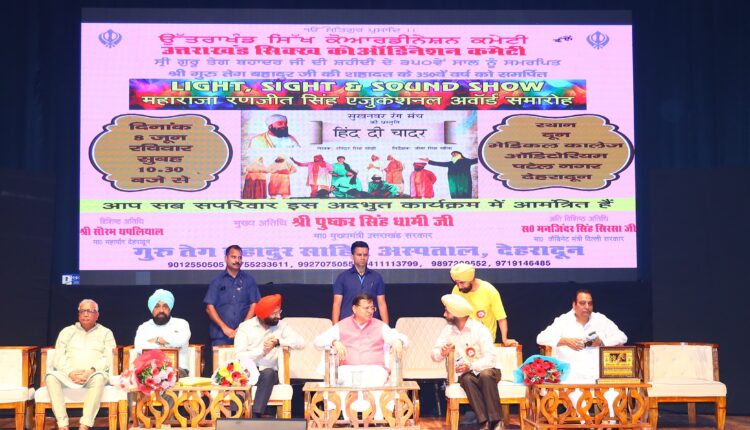 देहरादून, गुरु तेग बहादुर जी के 350वें बलिदान वर्ष के उपलक्ष्य में आयोजित भव्य नाट्य मंचन ‘हिन्द दी चादर’ के कार्यक्रम में उत्तराखंड के मुख्यमंत्री श्री पुष्कर सिंह धामी ने भाग लिया। यह ऐतिहासिक आयोजन उत्तराखंड सिख कोऑर्डिनेशन कमेटी एवं श्री गुरु तेग बहादुर चैरिटेबल चिकित्सालय के संयुक्त तत्वावधान में दून मेडिकल कॉलेज परिसर, पटेलनगर, देहरादून में किया गया।