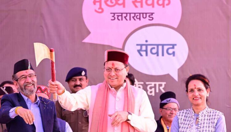 मुख्यमंत्री  पुष्कर सिंह धामी ने रविवार को त्यूनी, देहरादून में आयोजित मुख्य सेवक संवाद-आपके द्वार कार्यक्रम में भाग लिया। इस दौरान उन्होंने राज्य सरकार द्वारा शुरू किए गए विभिन्न विकास कार्यों की जानकारी दी। उन्होंने महिलाओं को किट वितरित की और विभिन्न स्टॉलों का निरीक्षण किया। इस अवसर पर उन्होंने महासू महाराज मंदिर परिसर के पुनर्निर्माण के लिए 120 करोड़ रुपये की राशि का प्रावधान करने की घोषणा की।