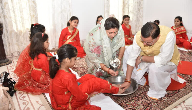 नवरात्रि की नवमी पर CM धामी ने किया कन्या पूजन
