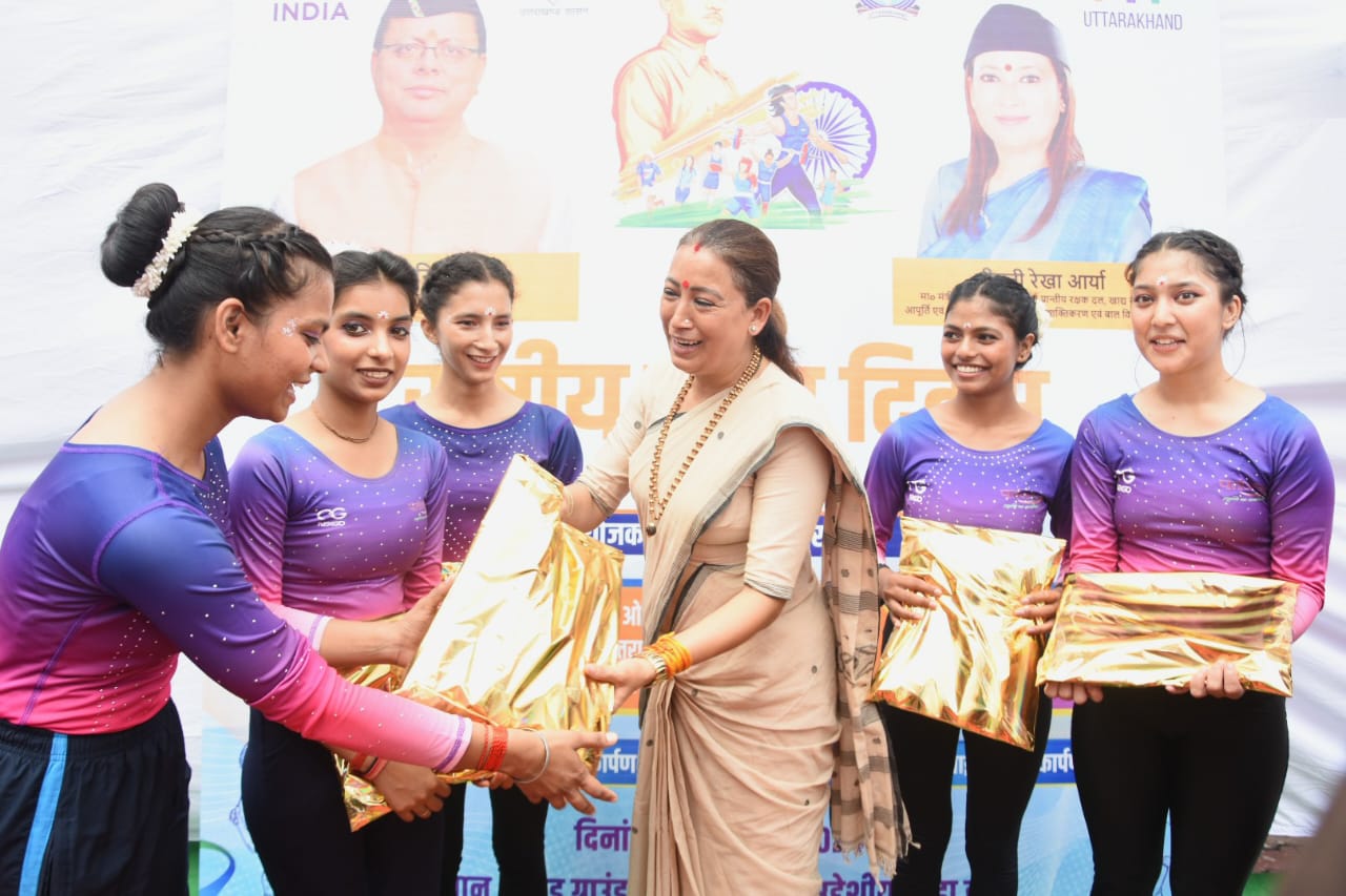 खेल मंत्री रेखा आर्य ने राष्ट्रीय खेल दिवस की शुभकामनाएं देते हुए कहा कि यह दिन महान खिलाड़ी मेजर ध्यानचंद जी को समर्पित है। उन्होंने पहले के समय में चुनौतियों का सामना करते हुए पूरी दुनिया में देश का नाम रोशन किया। आज अभिभावक अपने बच्चों को खेल के क्षेत्र में भी आगे बढ़ा रहे हैं। जब मेहनत और जुनून की पराकाष्ठा पार हो तब परिणाम जादूगरी में ही दिखते हैं। उन्होंने कहा खिलाड़ी की उपाधि आसान नही है। खिलाड़ी असंभव कार्य को संभव करके दिखाता है। मुख्यमंत्री श्री धामी के नेतृत्व में राज्य सरकार द्वारा खेल के क्षेत्र में ऐतिहासिक योजनाओं का संचालन किया जा रहा है।