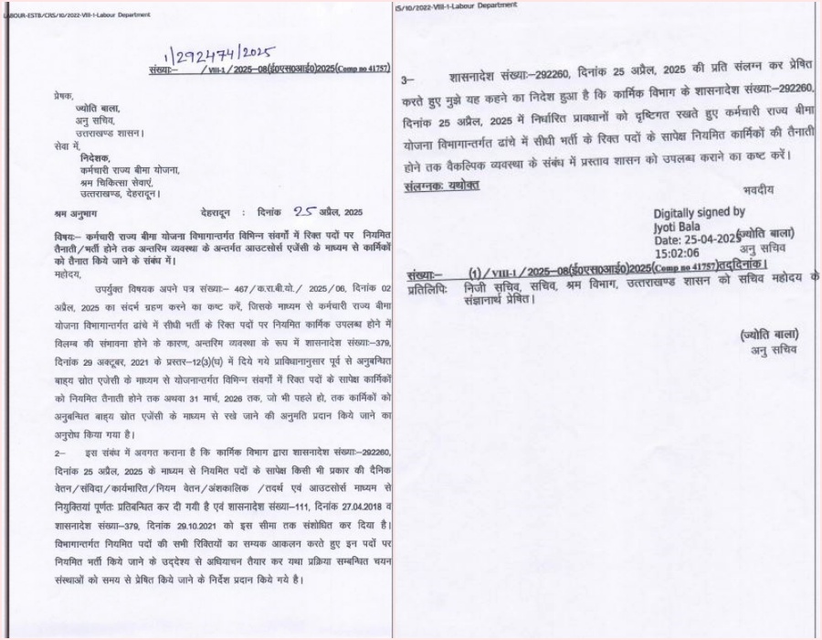 राज्य गठन के बाद से अब तक 2003, 2018 और 2023 में भी इसी तरह के आदेश जारी किए जा चुके हैं। बावजूद इसके, विभिन्न विभागों में बड़े पैमाने पर संविदा और आउटसोर्स के जरिये कर्मचारियों की तैनाती होती रही है। वर्तमान में प्रदेश के लगभग 70,000 कर्मचारी संविदा, आउटसोर्स और दैनिक वेतनभोगी व्यवस्था के तहत कार्यरत हैं।