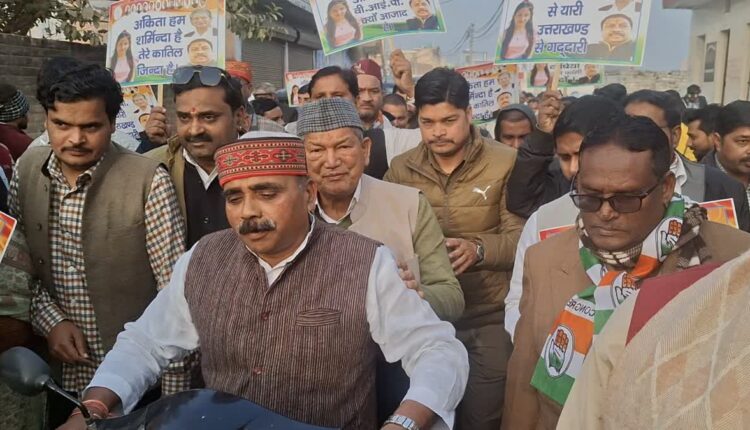 लक्सर (हरिद्वार)। अंकिता भंडारी हत्याकांड को लेकर उत्तराखंड की राजनीति एक बार फिर गर्मा गई है। अंकिता को न्याय दिलाने की मांग को लेकर कांग्रेस ने सड़कों पर उतरकर जोरदार प्रदर्शन किया। हरिद्वार जिले के लक्सर में पूर्व मुख्यमंत्री हरीश रावत के नेतृत्व में कांग्रेस कार्यकर्ताओं ने विशाल प्रदर्शन करते हुए भाजपा सरकार पर गंभीर आरोप लगाए।