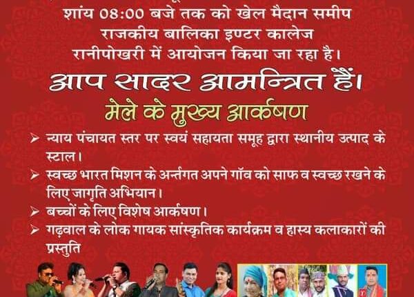 ग्राम प्रधान सुधीर रतूड़ी की पहल पर रानीपोखरी में 30 ओर 31 अक्टूबर को विशाल मेले का आयोजन i