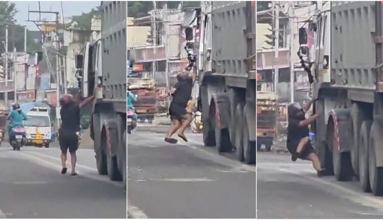 सोशल मीडिया पर सामने आए वीडियो में देखा जा सकता है कि रायपुर क्रॉसिंग पर एक युवक तेज रफ्तार डंपर को रोकने की कोशिश करता है। लेकिन चालक वाहन रोकने के बजाय और तेज गति से आगे बढ़ जाता है। इसी दौरान युवक डंपर के नीचे आने से बाल-बाल बच जाता है। यह दृश्य इतना खौफनाक था कि वीडियो देखने वालों के रोंगटे खड़े हो गए।