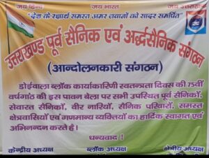 उत्तराखंड पूर्व सैनिक एवं अर्द्ध सैनिक संगठन डोईवाला ब्लॉक द्वारा सैनिक मिलन केंद्र नागाघेर रानीपोखरी 75 वा़ स्वतंत्रता दिवस धूमधाम से मनाया