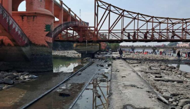 हरिद्वार : हर की पैड़ी से गायब हुआ गंगा का पानी, तो दिखने लगी रेल की पटरियां.. ये है माजरा