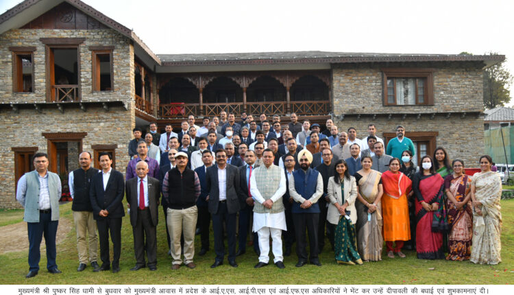 मुख्यमंत्री से आई.ए.एस, आई.पी.एस एवं आई.एफ.एस अधिकारियों ने की भेंट, मुख्यमंत्री पुष्करसिंह धामी ने दी दीपावली की बधाई एवं शुभकामनाएं