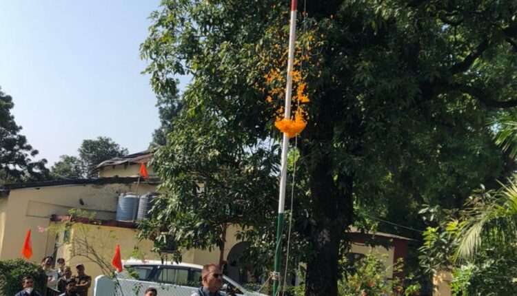 कन्या गुरुकुल महाविद्यालय के 98 वार्षिकोत्सव कार्यक्रम में झंडारोहण करते कैबिनेट मंत्री गणेश जोशी