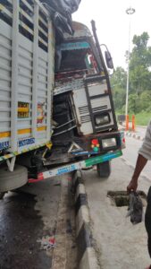 दुर्घटना से टोल पर भी काफी नुकसान हुआ है ट्रक ड्राइवर टक्कर मारने के बाद मौके से फरार हो गया। (अशोक यादव टोल संचालक)