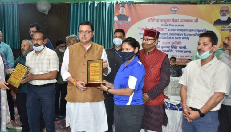 मुख्यमंत्री पुष्कर सिंह धामी ने राष्ट्रीय खेल दिवस के अवसर पर परेड ग्राउण्ड स्थित बहुउद्देशीय क्रीडा हॉल में महाराणा प्रताप स्पोर्ट्स कालेज देहरादुन के उदीयमान खिलाड़ियों, टेबल टेनिस एवं बेडमिंटन प्रतियोगिता के विजेता खिलाड़ियों को सम्मानित किया। इस अवसर पर मुख्यमंत्री ने राज्य में खेलों के प्रति अधिक से अधिक युवाओं की भागीदारी सुनिश्चित करने के लिये अनेक घोषणायें भी की। मुख्यमंत्री ने स्वयं भी बेटमिंटन खेल कर प्रतियोगिता की शुरूआत की। मुख्यमंत्री श्री पुष्कर सिंह धामी ने घोषणा की कि 8 वर्ष से 14 वर्ष तक की आयु के 50-50 बालक बालिकाओं को उनकी खेल प्रतिभा के अनुसार चिन्हित कर उन्हें प्रति वर्ष मुख्यमंत्री खिलाड़ी उन्नयन छात्रवृत्ति प्रदान की जाएगी। खिलाड़ियों का दैनिक भत्ता बढ़ाकर रू0 225/- किया जायेगा। महिला खिलाड़ियों के खेल कौशल विकास हेतु जनपद उधमसिंह नगर में महिला स्पोर्ट्स कॉलेज स्थापित किया जाएगा। नेशनल गेम्स में प्रतिभाग करने वाले खिलाड़ियों को उत्तराखंड राज्य परिवहन निगम की बसों में निशुल्क यात्रा सुविधा प्रदान की जाएगी। महाविद्यालयों / व्यवसायिक पाठ्यक्रमों में प्रवेश हेतु 5 प्रतिशत का उत्कृष्ट खिलाड़ी खेल कोटा प्रदान किया जाएगा। नेशनल गेम्स के पदक विजेताओं को भी एशियन / कामनवेल्थ / वर्ल्ड / ओलंपिक पदक विजेताओं की भाँति सरकारी सेवा प्रदान की जाएगी। खिलाड़ियों के प्रदर्शन में उत्कृष्टता लाने हेतु, वैज्ञानिक एवं मनोवैज्ञानिक तकनीक को सुनिश्चित करने हेतु ’खेल विज्ञान केंद्र’ की स्थापना राज्य खेल विकास संस्थान में की जायेगी। ओलंपिक खेलों में प्रदेश के खिलाड़ियों की प्रतिभागिता सुनिश्चित करने हेतु कोच की व्यवस्था की जाएगी। महाराणा प्रताप स्पोर्ट्स कॉलेज देहरादून में ’स्पोर्ट्स यूनिवर्सिटी’ बनाए जाने का प्रयास किया जाएगा। नेशनल गेम्स / एशियन / कॉमनवेल्थ / वर्ल्ड / ओलम्पिक में प्रतिभाग करने वाले खिलाड़ियों को खेल दुर्घटनाओं / खेल इंजरी एवं अन्य खेल आकस्मिकताओं के दृष्टिगत बीमा / आर्थिक सहायता प्रदान की जाएगी। राज्य में खेल सुविधाओं को बढ़ावा देने हेतु निजी क्षेत्र द्वारा स्पोर्ट्स कांपलेक्स, खेल अकादमी, स्पोर्ट्स यूनिवर्सिटी की स्थापना करने के लिए आर्थिक सहायता उपलब्ध कराने हेतु ’मेजर ध्यानचंद निजी क्षेत्र खेल प्रतिभागिता प्रोत्साहन कोष की स्थापना की जाएगी। राष्ट्रीय / अंतरराष्ट्रीय प्रतियोगिताओं में प्रतिभाग करने हेतु खिलाड़ियों को यात्रा मार्ग व्यय, स्पोर्टस किट्स इत्यादि की सहायता उपलब्ध कराई जाएगी। टेबल टेनिस के खिलाड़ियों के लिये अलग से हॉल की व्यवस्था की जायेगी। मुख्यमंत्री ने कहा कि राज्य में खिलाड़ियों के व्यापक हित में 