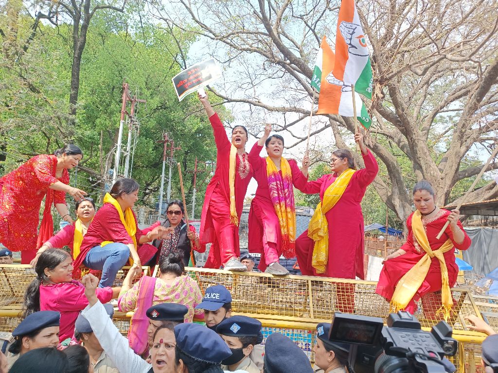 महिला कांग्रेस का सरकार पर हल्ला बोल: यूसीसी, महंगाई और भ्रष्टाचार के खिलाफ प्रदर्शन