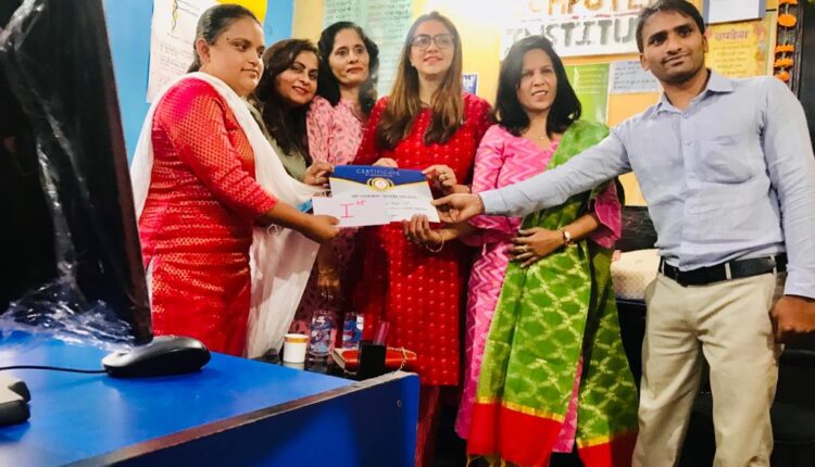मसूरी कंप्यूटर इंस्टीट्यूट के संचालक अमित कुमार और मातृशक्ति संस्था की अध्यक्ष स्मृति हरि ने छात्रों को पुरस्कृत किया ।