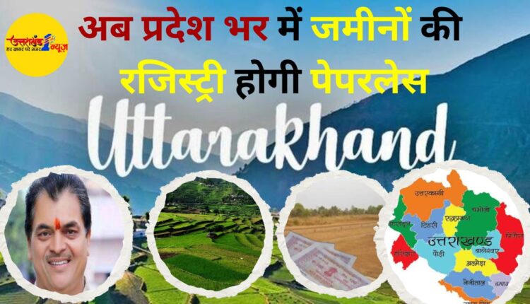 देहरादून,अब प्रदेश भर के रजिस्ट्री कार्यालयों में जमीन संबंधित रजिस्ट्री पेपरलेस व्यवस्था के अंतर्गत संचालित की जाएगी। सरकार ने इस संबंध में सभी तैयारियां पूर्ण कर ली है। कैबिनेट से अंतिम मंजूरी मिलने के बाद यह सुविधा प्राप्त हो सकेगी यह जानकारी वित्त मंत्री डॉ प्रेमचंद अग्रवाल ने दी।