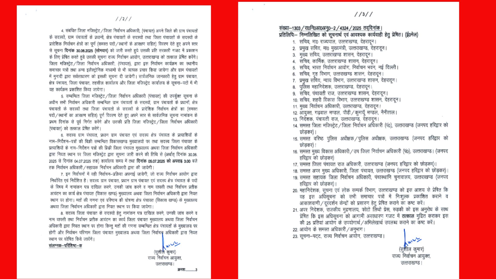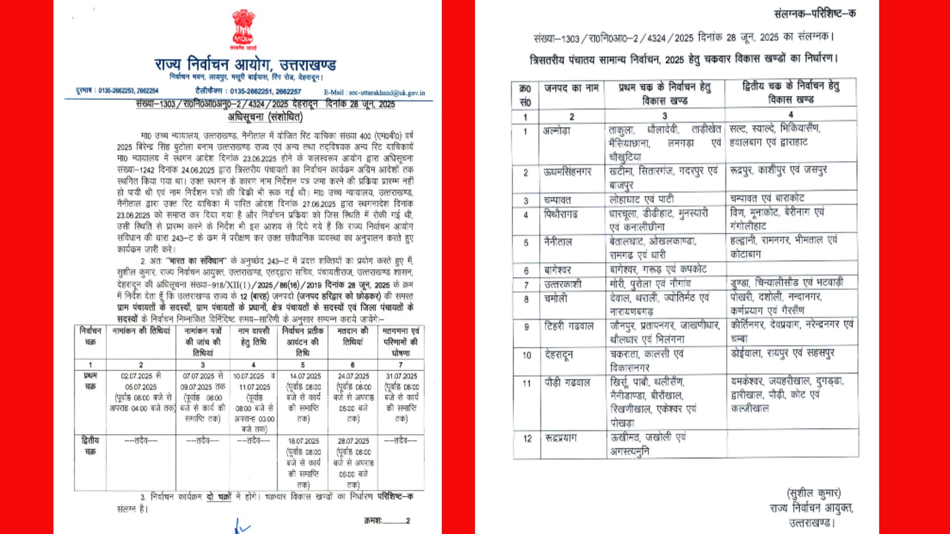 इससे पूर्व 21 जून को जारी पहली अधिसूचना को नैनीताल हाईकोर्ट के निर्देश के बाद स्थगित कर दिया गया था। अब विधिवत नए कार्यक्रम की घोषणा हो चुकी है, जिससे चुनावी प्रक्रिया को अंतिम रूप दे दिया गया है।