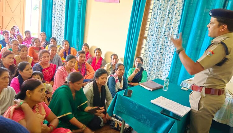 जनपद देहरादून को नशा मुक्त करने के लिए वरिष्ठ पुलिस अधीक्षक जिला देहरादून के समस्त शिक्षण संस्थानों, एनजीओ, ग्राम सभाओं, जनप्रतिनिधियों, और आम जनता को साथ लेकर व्यापक स्तर पर नशे के खिलाफ जन जागरूकता अभियान चलाए जाने संबंधित दिए गए निर्देशों के अनुपालन में पुलिस अधीक्षक ग्रामीण के दिशा निर्देश व मार्गदर्शन व क्षेत्राधिकारी डोईवाला के निकट पर्यवेक्षण में थानाध्यक्ष रानी पोखरी द्वारा आज ग्राम पंचायत रानीपोखरी के पंचायत घर में ग्राम प्रधान सुधीर रतूड़ी और गांव की समस्त महिलाओं तथा विभिन्न समूहों से जुड़ी महिलाओं के साथ ग्राम जन जागरूकता हेतु एक गोष्ठी का आयोजन कर उपस्थित सभी महिलाओं को नशे से होने वाले दुष्प्रभाव नशे से बचाव व रोकथाम संबन्धी तथ्यो तथा साइबर संबंधी अपराधों एवं यातायात नियमों की जानकारी तथा अपने बच्चों को हेलमेट पहनने आदि जानकारी दी गयी। गोष्ठी में आयोजित सभी महिलाओं को उत्तराखंड पुलिस एप गौरा शक्ति एप्प व अन्य लाभप्रद एप्प* की जानकारी देकर वर्तमान मे नशे के विरूध्द प्रचलित अभियान को सफल बनाने में अपेक्षित सहयोग किए जाने की अपील की गयी।
