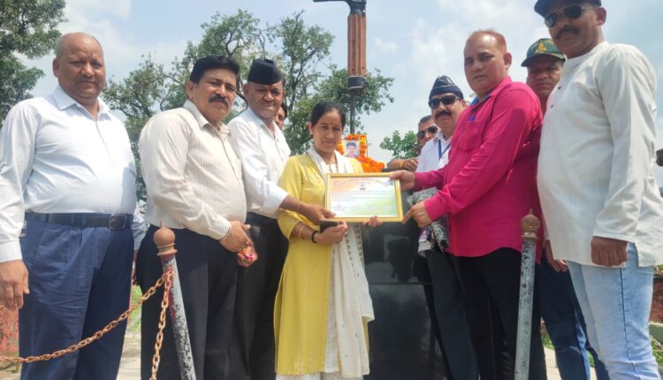 शहीद की वीरांगना पत्नी चंद्रा भिडोला को शॉल ओढ़ाकर सम्मान पत्र भेंट किया गया ।इसी अवसर पर स्वतंत्रता सेनानी आजाद हिंद फौज के स्वर्गीय गंगा सिंह के सुपुत्र अवतार सिंह राणा को भी शाल भेंट कर सम्मानित किया गया। पूर्व प्रधान नरेंद्र सिंह नेगी ने कहा कि आज हम सैनिको और शहीद के कारण ही आज हम अपने घरों में सुरक्षित हैं हमें शहीद परिवारों का सम्मान करना चाहिए। पुष्पांजलि अर्पित करने वालों में पूर्व प्रधान नरेंद्र सिंह नेगी , कैप्टन आनंद सिंह राणा, सांसद प्रतिनिधि रविन्द्र बेलवाल, दीवान सिंह रावत, बीपी शर्मा ,योगेश पुंडीर ,बालम गुनसोला, वीरेंद्र सिंह रावत ,विक्रम सिंह, ध्यान सिंह राणा , एन.के .शर्मा , विजय भट्ट वीरेंद्र सिंह बिष्ट, खुशहाल सिंह रावत, सत्यपाल सिंह खत्री ,कैलाश चंद सती राजेंद्र रावत ,महेंद्र सिंह नेगी , प्रेम पुंडीर , सतीश सेमवाल , भूतपूर्व सैनिक आदि उपस्थित रहे ।