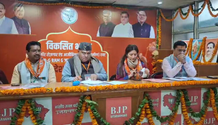 देहरादून।भारतीय जनता पार्टी ने उत्तराखंड में विकसित भारत–गारंटी फॉर रोजगार एवं आजीविका मिशन (VB-G RAM G) को लेकर व्यापक जनजागरण अभियान की शुरुआत कर दी है। इस अभियान के तहत गांव-गांव तक पहुंच बनाने के लिए घर-घर संपर्क, किसान पदयात्रा, ट्रैक्टर रैली और बैलगाड़ी रैली जैसे कार्यक्रम आयोजित किए जाएंगे।