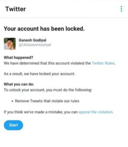 कांग्रेस के पूर्व राष्ट्रीय अध्यक्ष राहुल गांधी के बाद अब उत्तराखंड प्रदेश अध्यक्ष गणेश गोदियाल के ट्विटर अकाउंट को ट्विटर ने अस्थायी रूप से निलंबित कर दिया है। इससे खफा गोदियाल ने कहा कि वह अपने जनों की आवाज को हमेशा उठाते रहेंगे।