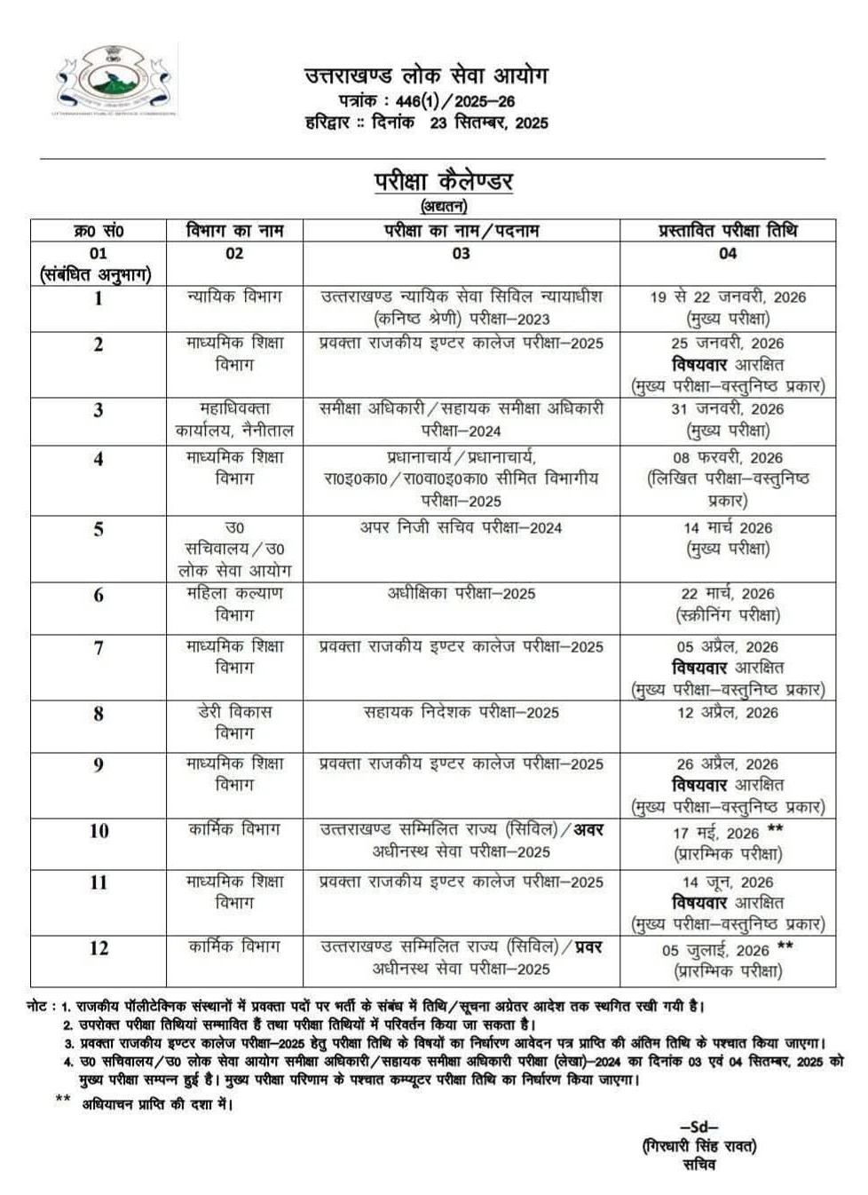 UKPSC ने जारी किया परीक्षा कैलेंडर 2026
