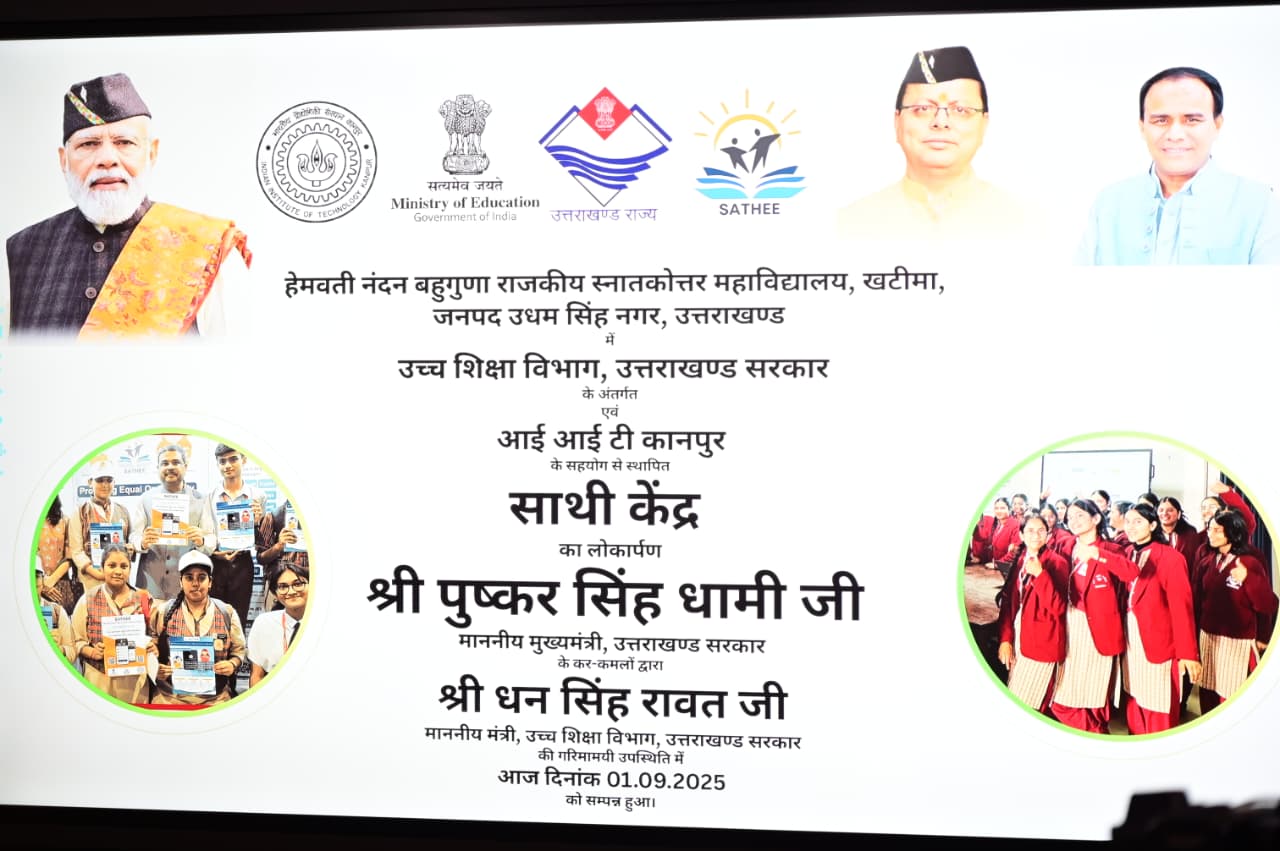 खटीमा/देहरादून। उत्तराखंड के विद्यार्थियों के लिए शिक्षा के क्षेत्र में एक ऐतिहासिक कदम उठाते हुए मुख्यमंत्री पुष्कर सिंह धामी ने सोमवार को राज्य के पहले “साथी केंद्र” का उद्घाटन किया। यह केंद्र हेमवती नंदन बहुगुणा राजकीय स्नातकोत्तर महाविद्यालय, खटीमा में आईआईटी कानपुर के सहयोग से स्थापित किया गया है।