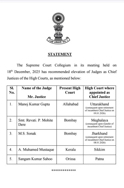नैनीताल। उत्तराखंड उच्च न्यायालय के मुख्य न्यायाधीश न्यायमूर्ति गुहानाथन नरेंद्र शुक्रवार 9 जनवरी 2026 को अपने पद से सेवानिवृत्त हो जाएंगे। उनके सेवानिवृत्त होने से पूर्व न्यायिक जगत में उन्हें सम्मानपूर्वक विदाई देने की सभी तैयारियां पूरी कर ली गई हैं। हाईकोर्ट के रजिस्ट्रार जनरल योगेश कुमार गुप्ता द्वारा इस संबंध में आधिकारिक नोटिस जारी किया गया है।