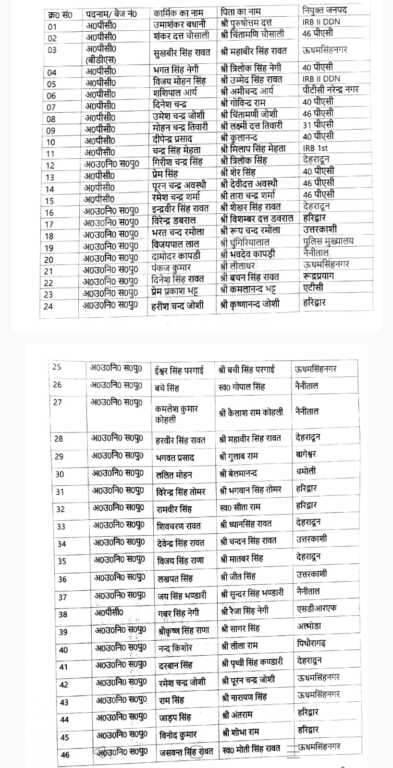 इसके अलावा आईआरबी द्वितीय देहरादून, 31वीं पीएसी, 40वीं पीएसी और 46वीं पीएसी जैसी प्रमुख इकाइयों के कार्मिक भी इस सूची में शामिल हैं।