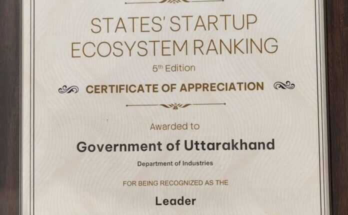 देहरादून। भारत सरकार के वाणिज्य एवं उद्योग मंत्रालय के अंतर्गत उद्योग संवर्धन एवं आंतरिक व्यापार विभाग (DPIIT) द्वारा जारी States’ Startup Ecosystem Ranking के 5वें संस्करण में उत्तराखण्ड को मजबूत स्टार्टअप इकोसिस्टम विकसित करने के लिए ‘लीडर’ की श्रेणी में स्थान दिया गया है।