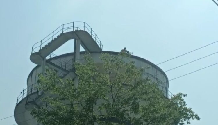 युवक को पानी की टंकी से नीचे उतारने के लिए पुलिस कर रही है मशक्कत